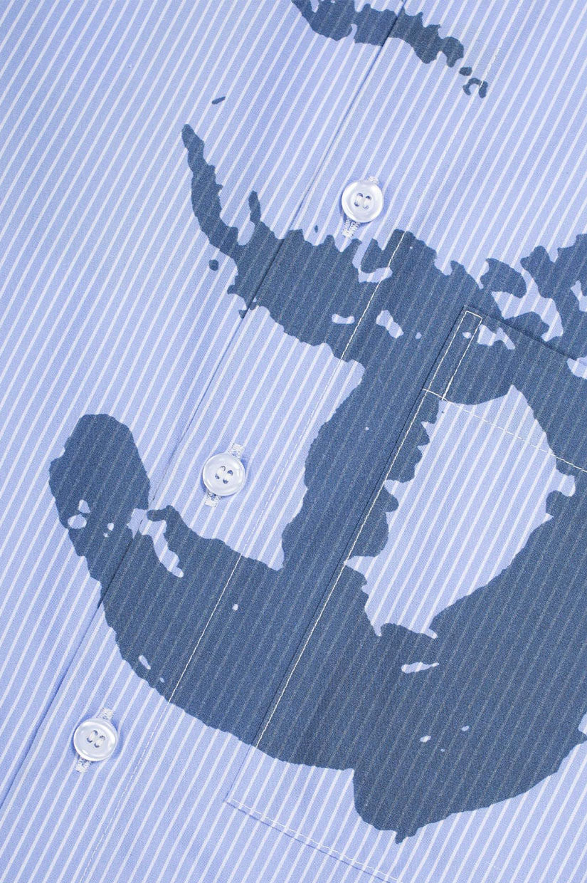 The Marilyn Shirt made from a lightweight and super comfortable striped tencel fabric. Features all-over graphic printing and signature logo embroidery at hem. Cropped, boxy fit.